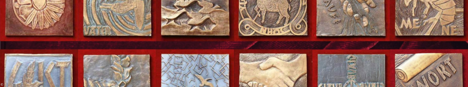 Nach intensiven Gesprächen mit den Pfarrern Dr. Hansjörg Schemann und Martin Heim setzte die Steinmetz-Meisterklasse 2016/2017 diese Begriffe unter Leitung von Ulrike Ader gestalterisch in Reliefs um.