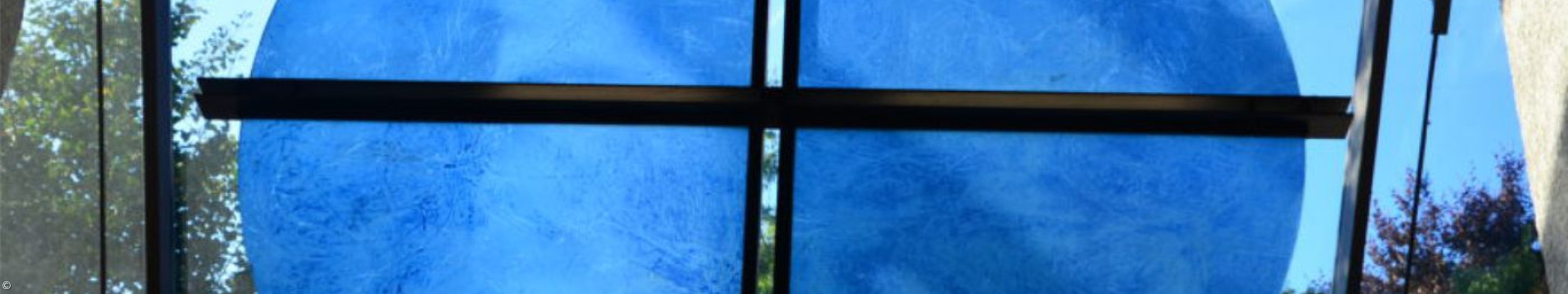 Die blaue Kreuzscheibe ist das "Markenzeichen" der Christuskirche.